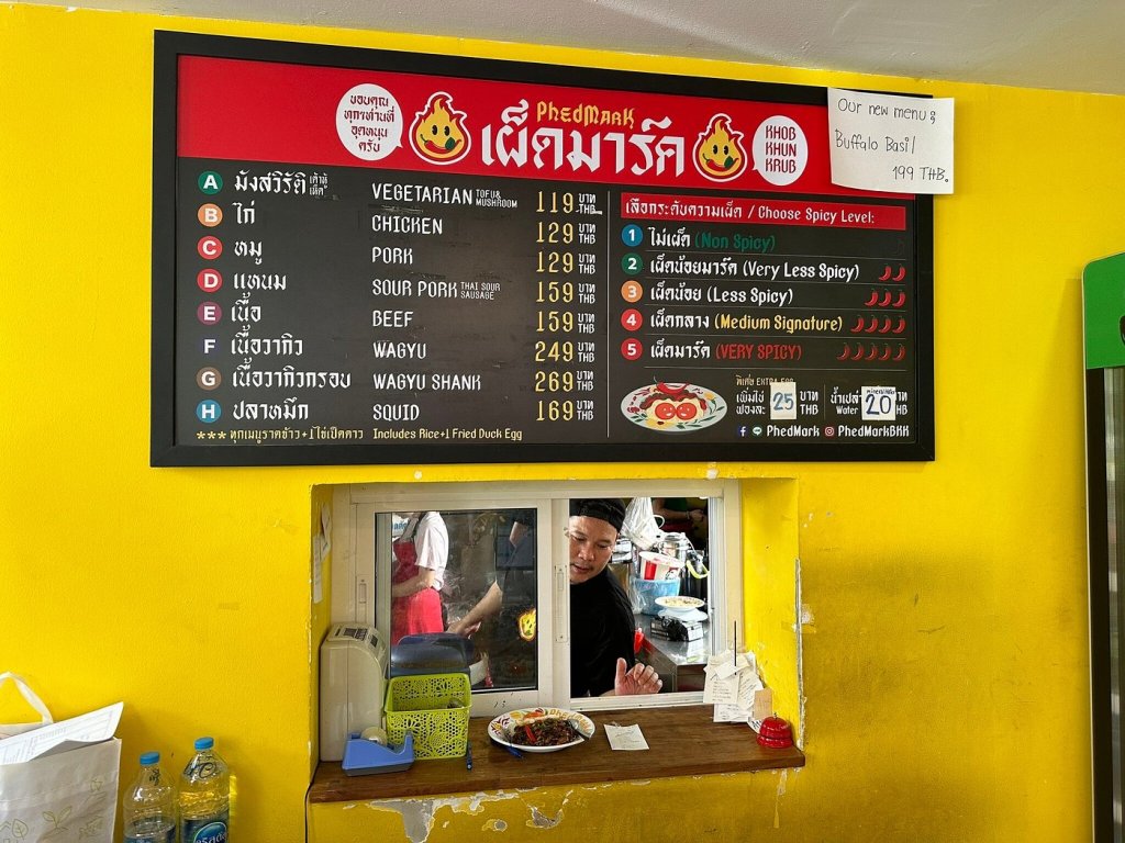 Located in the heart of Bangkok’, just a stone’s throw from the Ekkamai BTS Station and next to the Bangkok Planetarium and Science Center, Phed Mark is a compact eatery with a big reputation. The restaurant is small, often bustling with hungry patrons and delivery drivers, so be prepared for a bit of a wait—about 30 minutes or so during peak times. But trust us, it’s worth every minute.